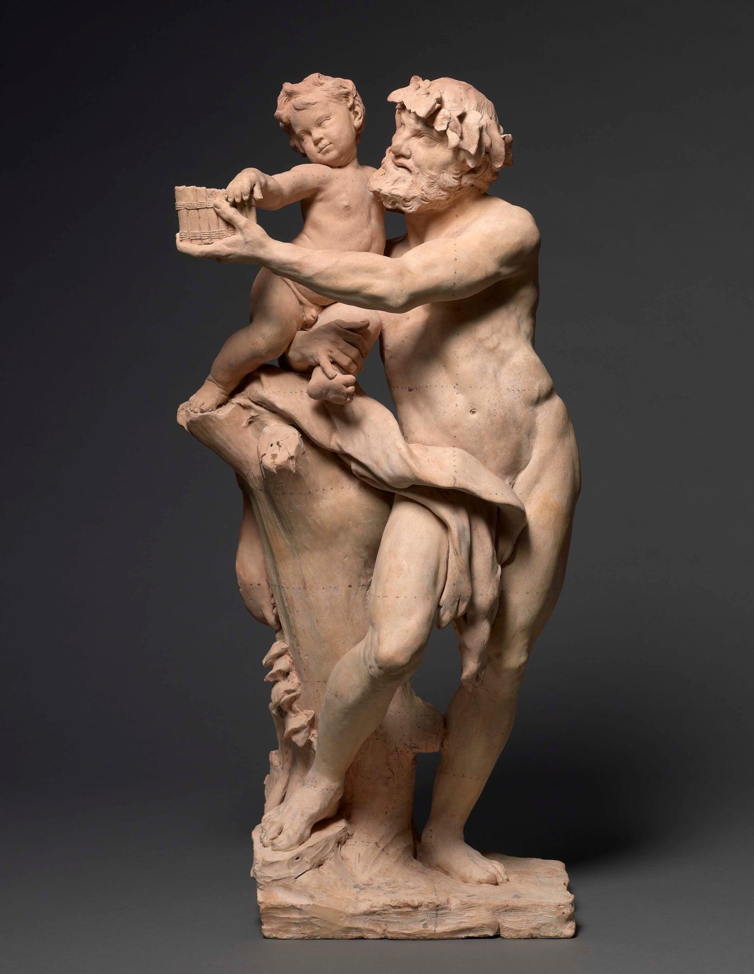 Silenus, a demi-god, nursed and educated Bacchus and later joined his retinue. Some ancient authors portrayed Silenus as a philosopher, knowledgeable about the formation of the world and wise about the nature of things, and this is how he is portrayed here.